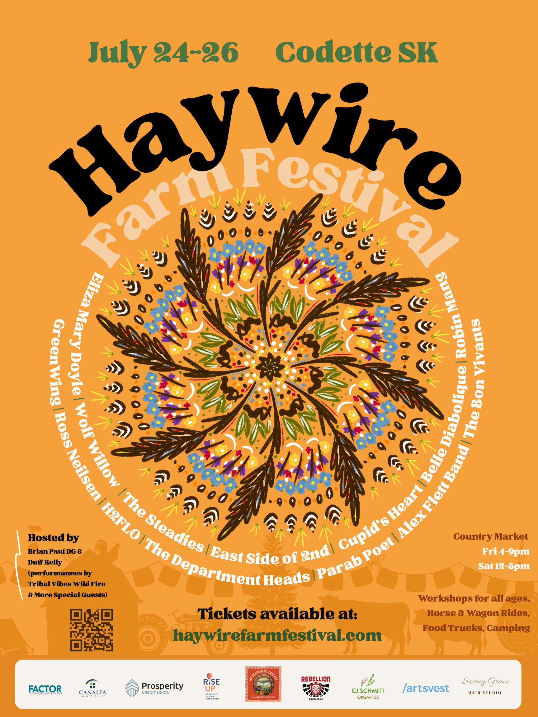 Haywire Farm Festival is a community driven, not-for-profit event dedicated to celebrating Saskatchewan talent and strengthening rural arts and agricultural culture. Each year, we bring musicians, artists, families, homesteaders, and visitors together on the Haywire Farm for three days of music, workshops, local food, and hands-on learning.